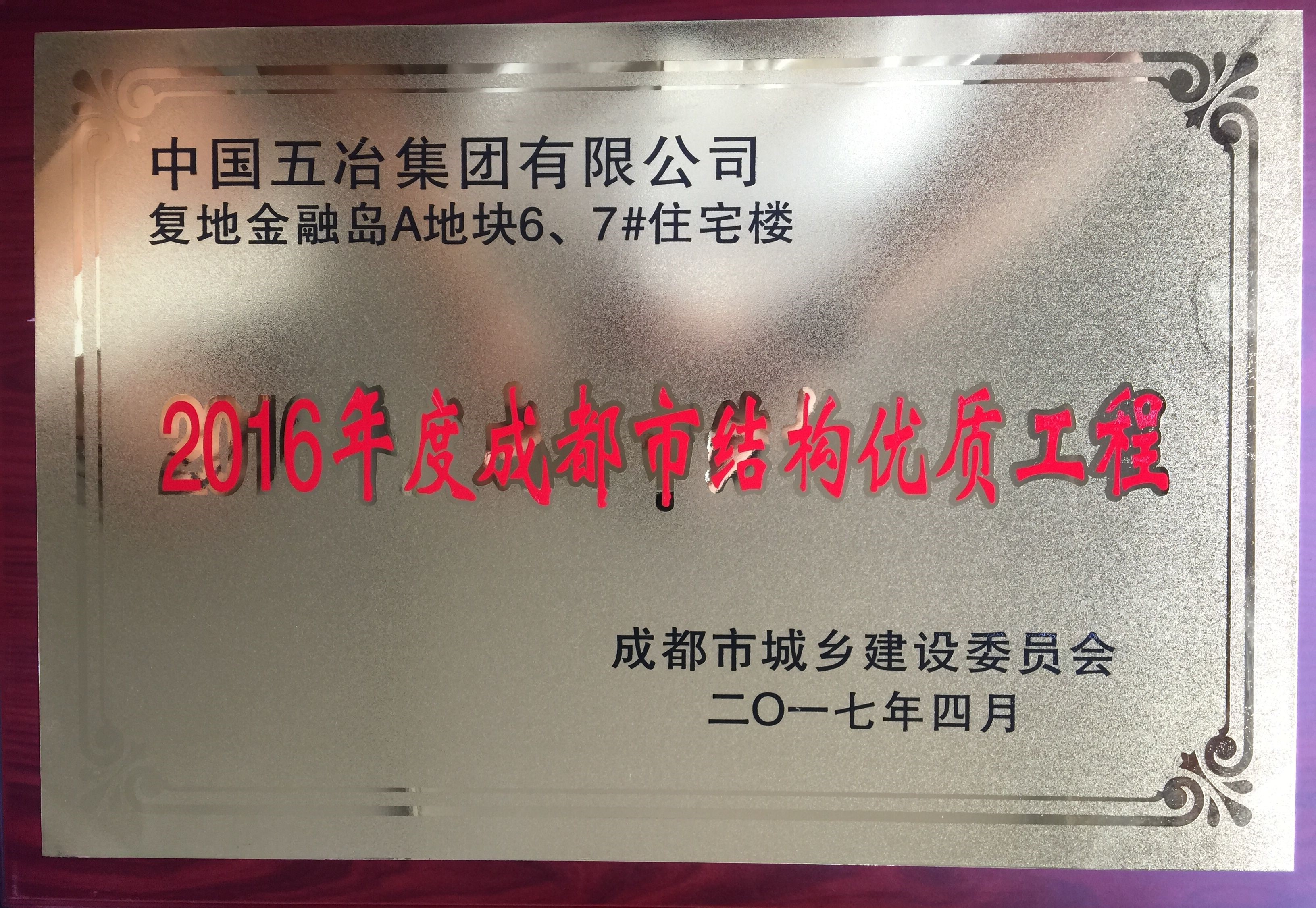 复地金融岛A地块6、7#住宅楼—2016年度成都市结构优质工程