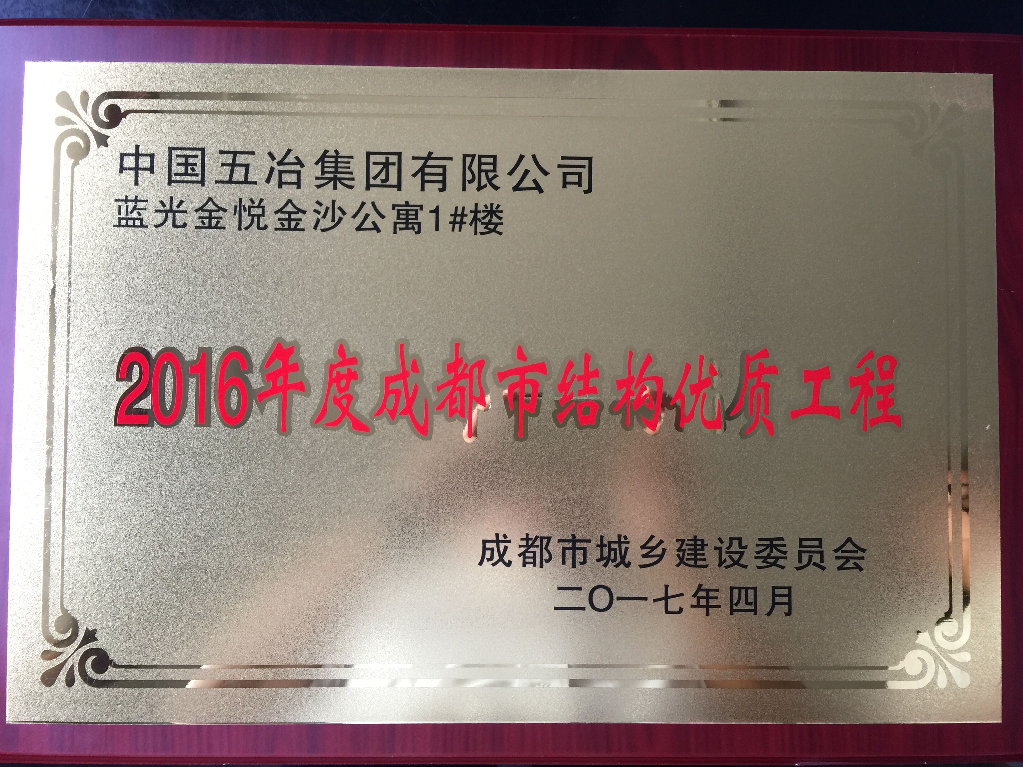 蓝光金悦金沙公寓1#楼—20116年度成都市结构优质工程