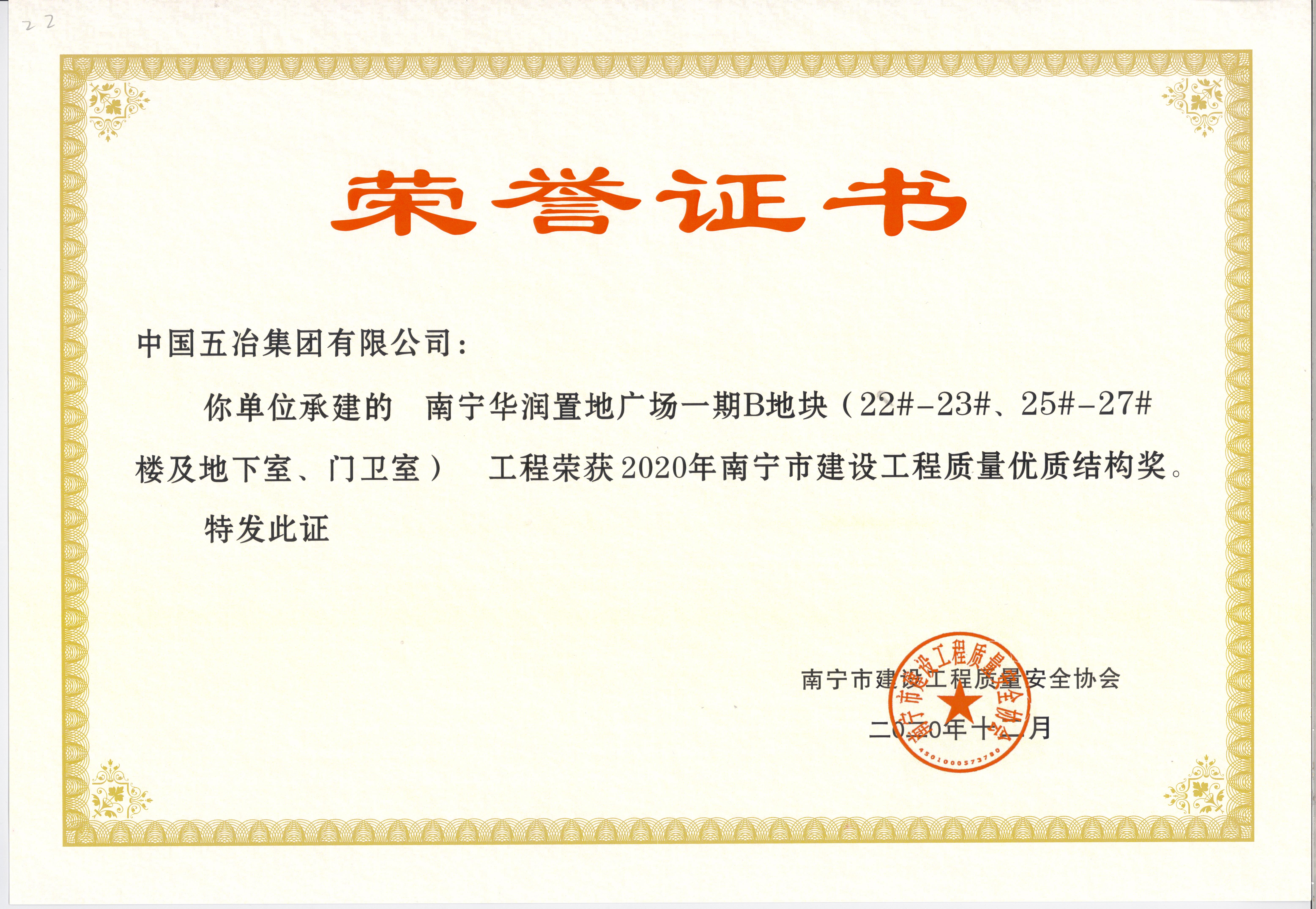 南宁华润置地广场一期B地块—2020年南宁市建设工程质量优质结构奖