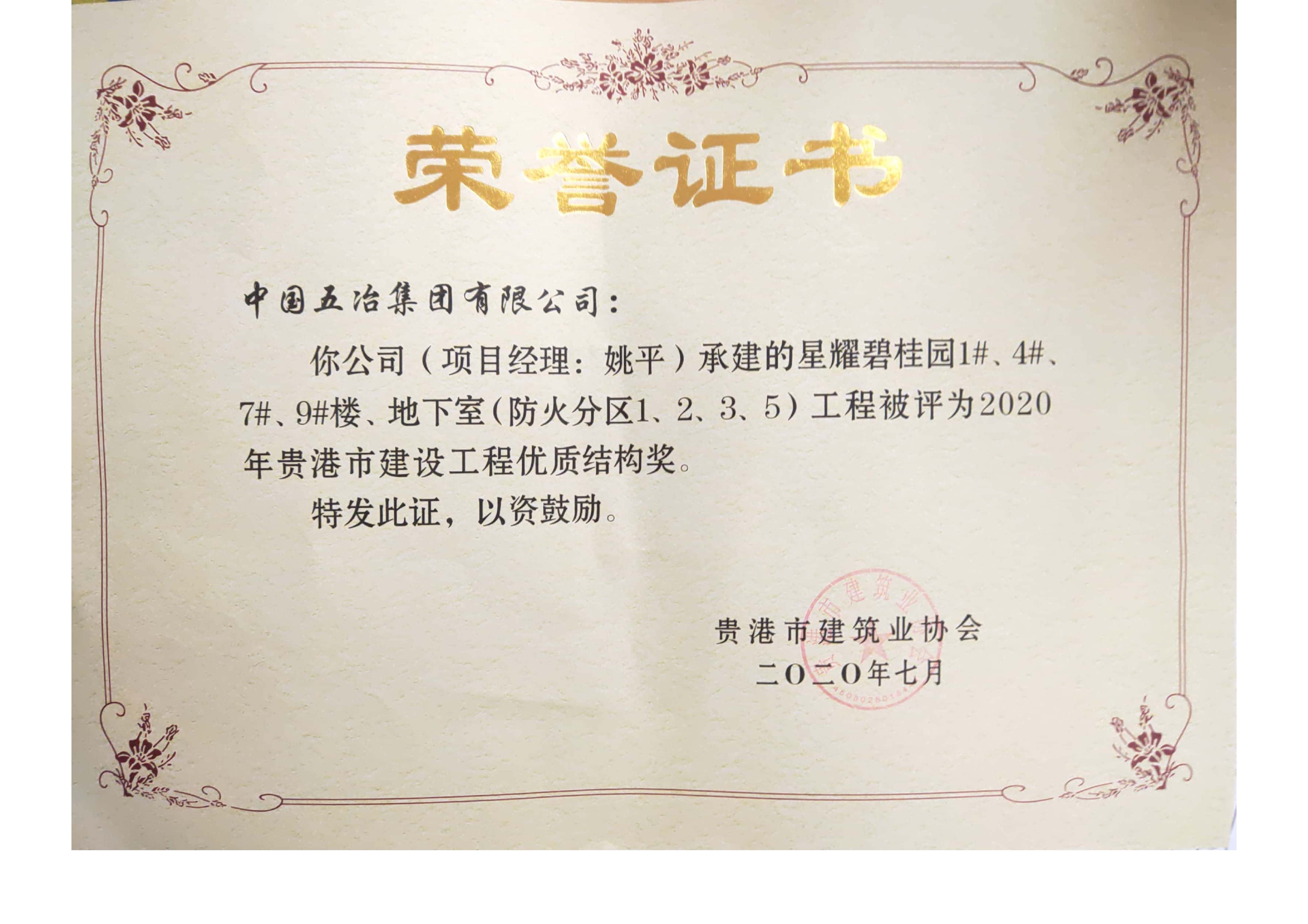 星耀碧桂园1#、4#、7#、9#、地下室工程—2020年贵港市建设工程优质结构奖