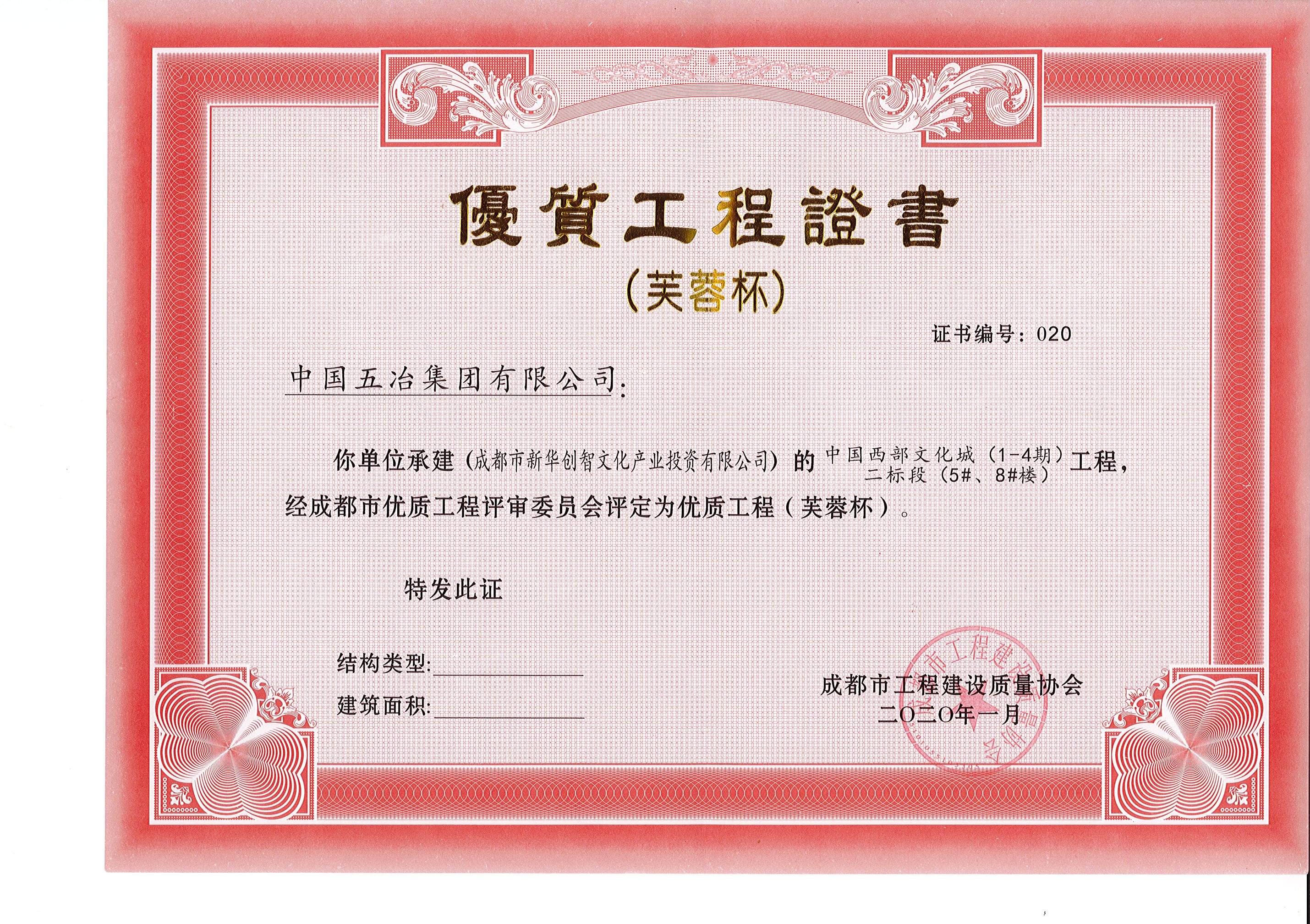 中国西部文化城(1-4期)二标段(5#、8#)—成都市芙蓉杯
