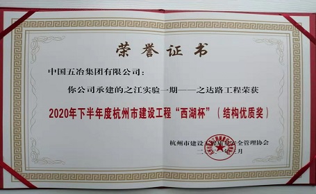 之江实验一期-之达路工程—2020年下半年度杭州市建设工程”西湖杯“(结构优质奖)