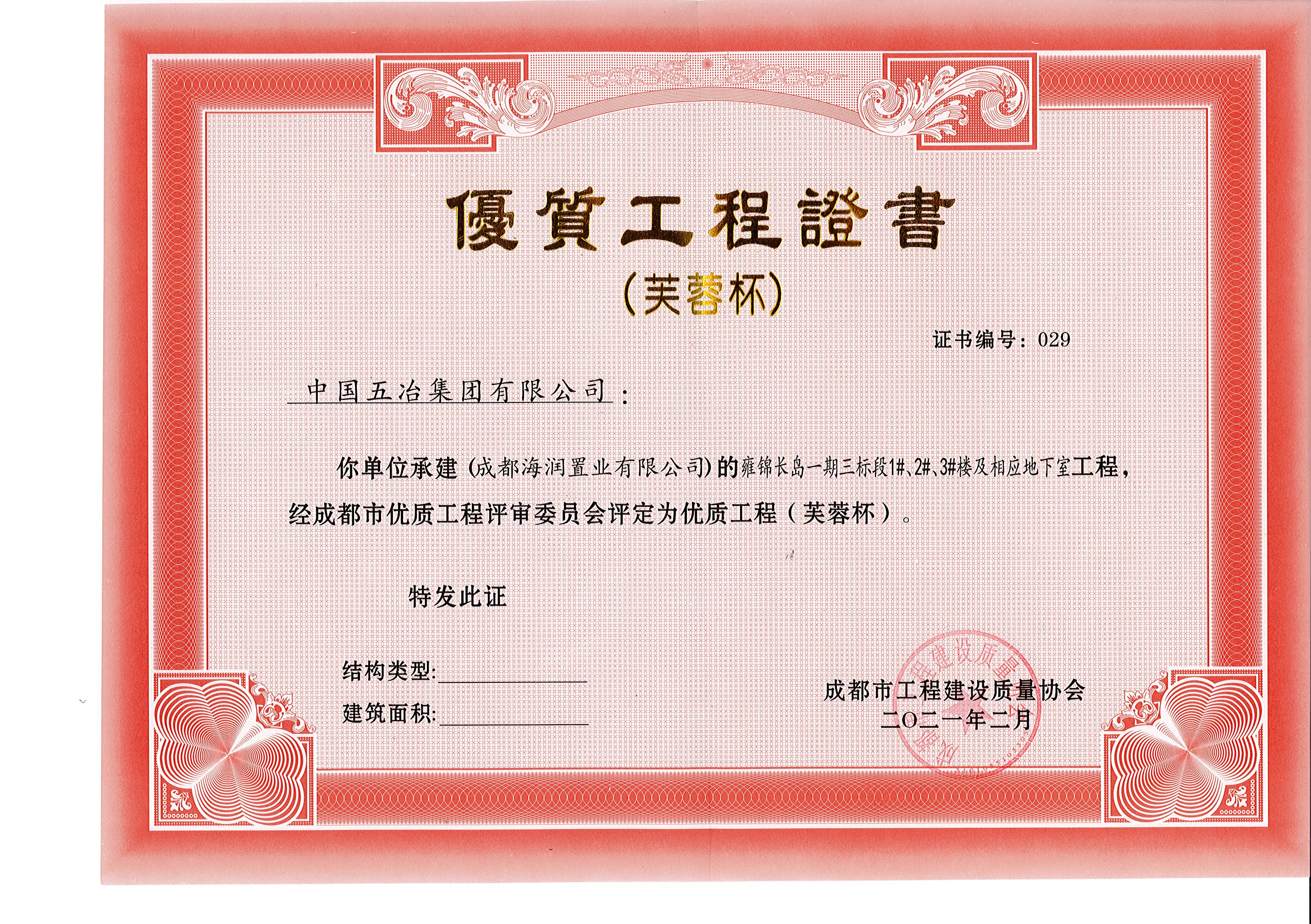 雍锦长岛一期三标段1#、2#、3#楼及相应地下室工程—2020年成都市芙蓉杯
