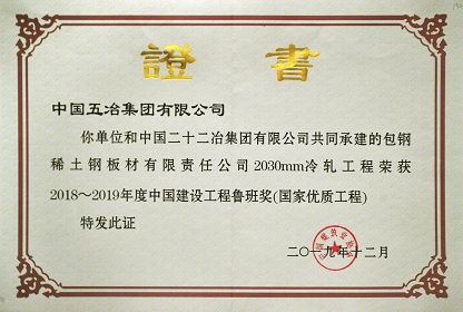 包钢稀土钢板材有限责任公司2030mm冷轧工程——2018~2019年度鲁班奖
