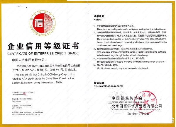 中国钢结构协会企业信用AAA级