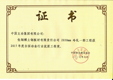包钢稀土钢板材有限责任公司2030mm冷轧一部工程-2017年度全国冶金行业优质工程奖