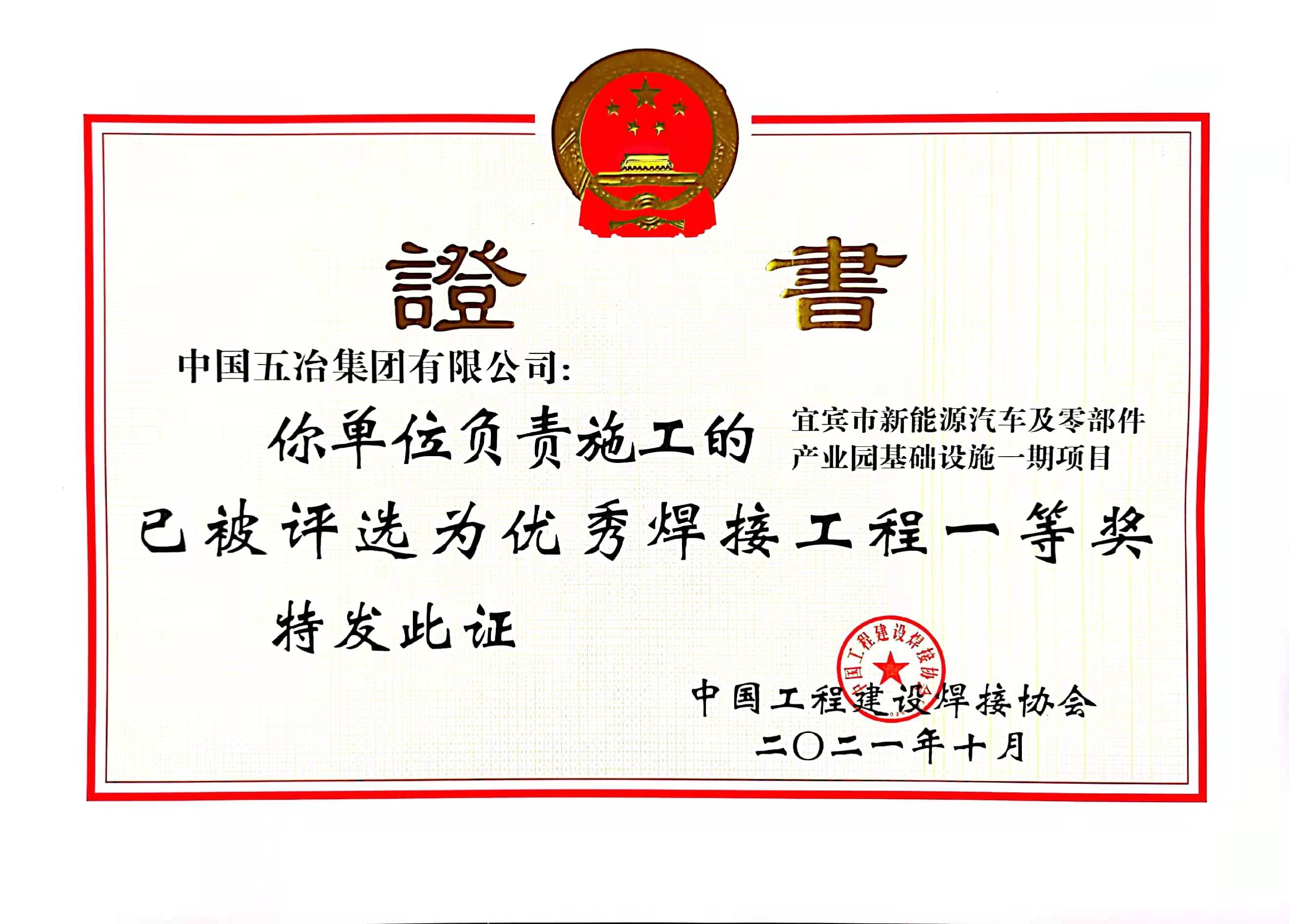 宜宾市新能源汽车及零部件产业园 基础设施一期项目-2021年度全国优秀焊接工程一等奖