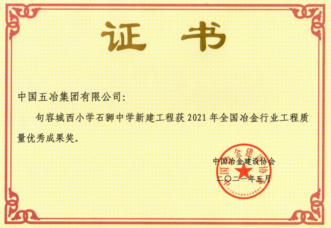 句容城西小学石狮中学新建工程-2021年全国冶金行业工程质量优秀成果奖